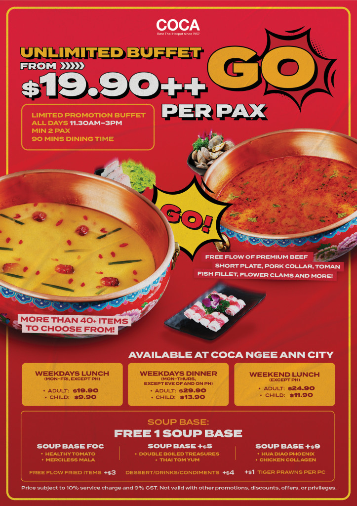 *The Unlimited Buffet GO promotion is valid Monday to Sunday, except on Public Holidays. Not valid in conjunction with any other promotions, discounts, or privileges. Prices are subject to 10% Service Charge and 9% GST.